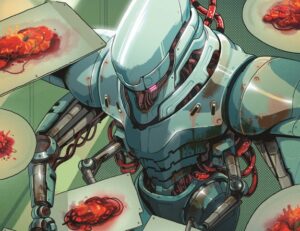 Une équipe de cyborgs vole un foodtruck spatial et doit se faire passer pour des chefs pour éviter d’être découvert. Le décor (des cyborgs recouverts d’une « viande » qui n’est pas sans rappeler celui de Terry Bisson) Ils sont faits de viande) est idéal pour explorer ce que signifie être humain par un étranger analytique. C’est une représentation d’un grand nombre de nuances que nous attendons (ou espérons) que l’IA ne pourra jamais vraiment comprendre, comme pourquoi nous aimons le ketchup sur nos hamburgers. Et c’est un avertissement sévère qui est étrangement pertinent par rapport au problème actuel de flagornerie de l’IA.