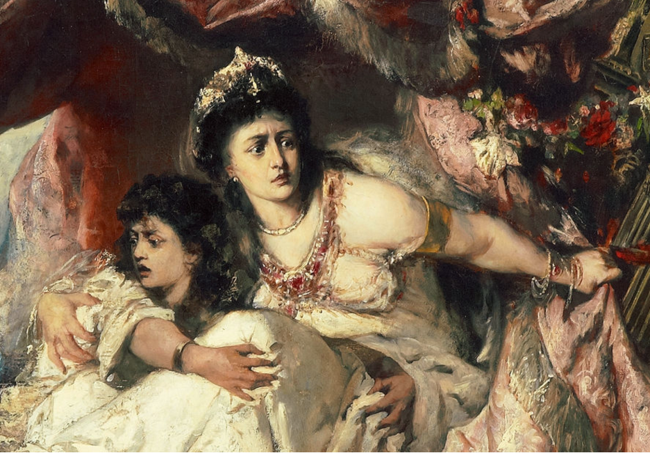 Dans la peinture de Wertheimer, l'amie d'Agrippina et préposée Acerronia Polla s'accroche à elle pour la vie alors que le navire opulent construit pour s'effondrer fait son sale boulot. Agrippina jette un bras protecteur autour d'Acerronia, retournant les soies pendant que les vagues s'écrasent autour d'eux. Dans l'ombre à droite, nous voyons l'avenir d'Acerronia – après qu'elle crie aux hommes se faisant passer pour l'ancienne impératrice afin que Acerronia puisse être sauvée. Ils l'ont poignardée à mort. Agrippina s'est immédiatement rendu compte que le navire qui coulait était une tentative d'assassinat. Wertheimer la montre dans l'emprise de la terreur. Même effrayé, elle est puissante. Je peux la voir essayer de déterminer comment sortir de cela vivante.