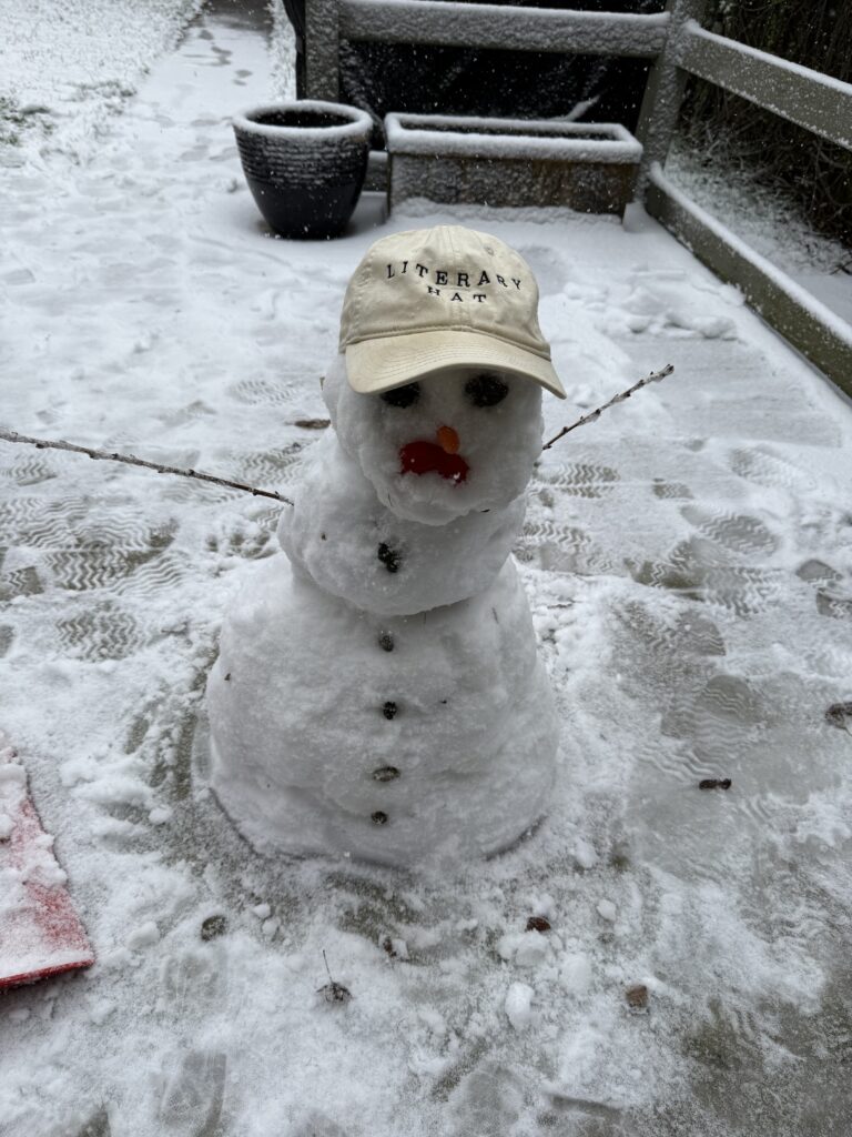 Et cette semaine, Richmond de Jessie Gaynor a vu sa première grosse neige. La famille a célébré en créant un jeune bonhomme de neige littéraire triste.